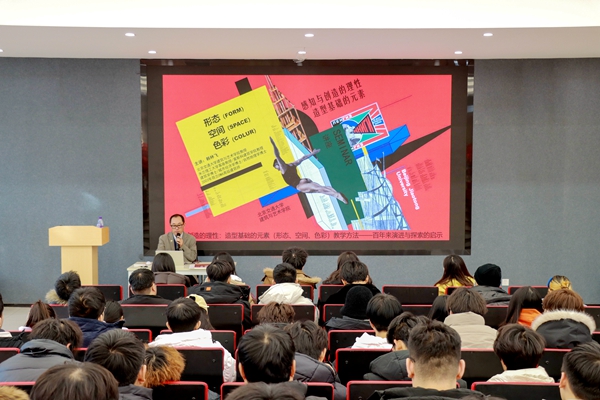 在讲座中,韩教授详细阐述了建筑造型的三个核心元素:形态、空间和色彩,并提供了具体的习题供学生们实践。他的讲座不仅为学生们构建了一个系统的方法论框架,指导他们在建筑造型处理上找到正确的方向,同时也为师生搭建了一个宝贵的交流和思考平台。