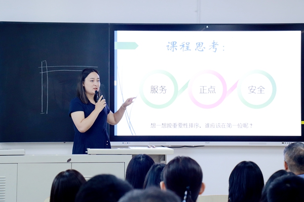 韩倩倩老师的《民航地勤服务》公开课展示中以一个小问题展开课程内容,引导着大家对民航工作中的“服务”“安全”“整点”进行排位思考,在授课内容上着重讲解了民航地勤服务中的沟通技巧,在教学方法上通过讲解自身经历以及航空公司中发生的实际案例进行深入讲解,同时引入贴近课程内容的小游戏,加深对相关知识的理解。