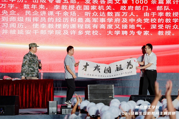 讲座伊始,李兵教授向师生赠送书籍及“为祖国成才” 的书法作品,以此勉励师生。随后,李兵教授讲述了自己青年时期的参军经历,深刻阐释了青年在国家发展中的关键地位。青年作为国家的未来与希望,是推动社会进步的核心力量。尤其在当前的国家安全形势下,青年一代肩负着重大的责任与使命。