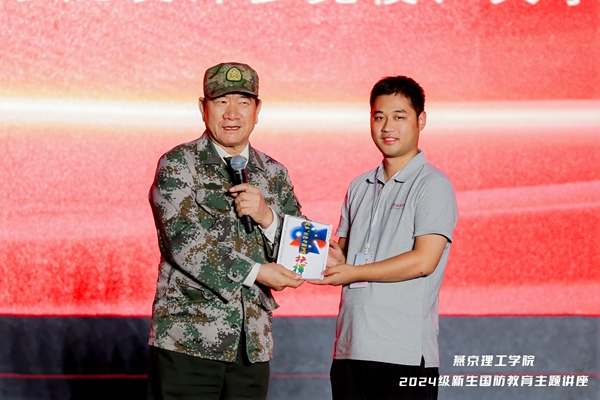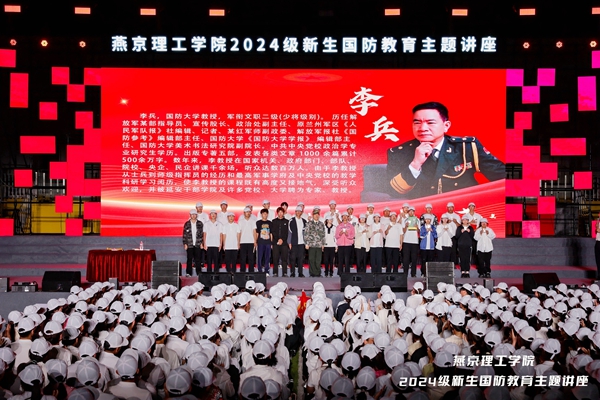 本网讯(学生处 王辰辰) 9 月 11 日,燕京理工学院特邀国防大学教授李兵为 2024 级新生开展国防教育讲座,主题为“做新时代有志气有骨气有底气好青年”。