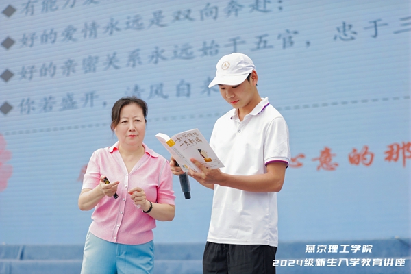 讲座开场,段教授结合自身经历引出婚恋观念,还通过有趣的互动答题小游戏,引导同学们探索生活中的人格信息。她向同学们传递了“双向奔赴,共同成长,彼此增益,各自强大” 这一颇具指导意义的 16 字真言,为新生的婚恋之路点亮了一盏明灯。