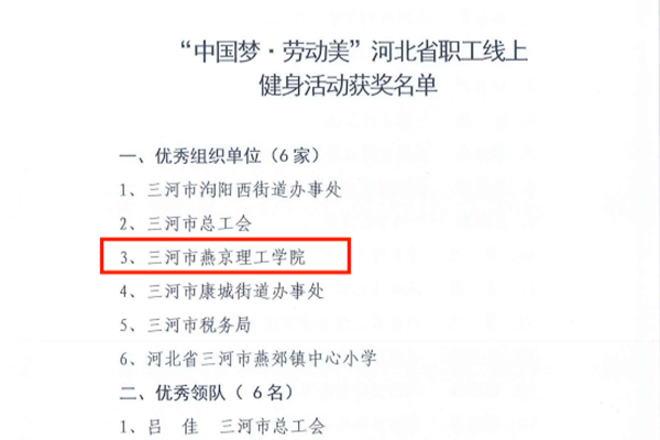 喜报|我校教职工在“中国梦·劳动美”线上健身活动中荣获集体及个人荣誉