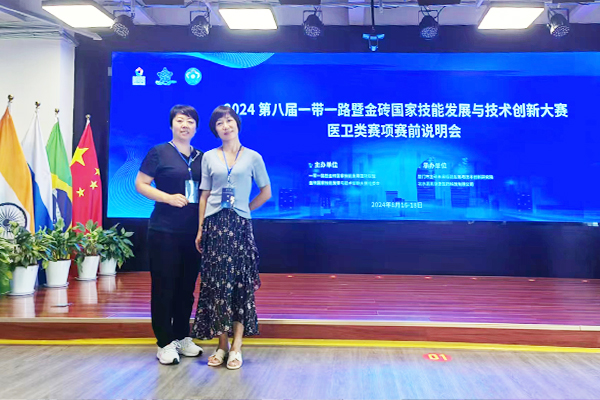 本网讯(环境与健康学院 王建慧)为贯彻落实教育部高教司文件精神,推动人工智能引领高等教育数字化创新发展,加强数字医学与虚拟仿真助力医学卫生类人才培养,8月16日-8月18日,在超现代大健康产业学院的支持下,环境与健康学院专业教师张娟、王建慧参加了—带一路暨金砖国家课程开发、标准制定与国际训练基地建设研讨会、2024年医卫类赛项赛前说明会暨医药大健康专业委员会成立会,特邀教育部、人社部、民政部嘉宾出席会议,全国百所高职院校校长、院长、专业负责人、骨干教师500余人齐聚厦门金砖未来技能发展与技术创新研究院,交流互鉴。本次盛会线上线下同步直播。