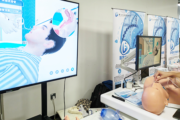 在实操培训观摩现场,医药大健康专委会邀请专业技术人员对医学虚拟仿真系统、数字化急救、临床护理、分娩等技能训练系统进行了示范,并对相关模型的操作流程进行了演示,同时就数据采集和评价等操作疑问一一作了简答,参会的师生代表参与了仿真模型训练和体验。