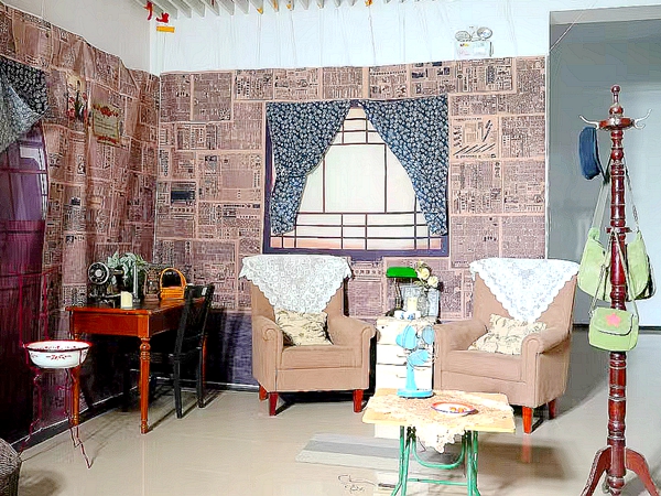 作品按年代安排在不同楼层,其中20世纪70年代楼层重现了当时的家庭与劳动场景,20世纪80年代楼层则通过歌舞厅场景与时代歌曲重现了那一时代的青春活力,20世纪90年代和00年代的楼层分别通过小卖铺和网吧场景,展示了那些年代的生活状态。演员们身着特色校服、喇叭裤等年代服装,为场景增添氛围。展览的一大特色是其场景的真实感与创意,结合AI技术生成的作品不仅展示了技术进步,还通过电子屏与投影等技术展示手段,极大增强了观展体验。