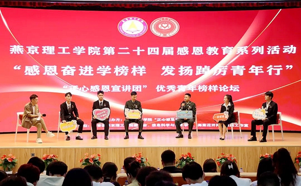 燕京理工学院第二十四届感恩教育系列活动“感恩奋进学榜样,发扬踔厉青年行”——“正心感恩宣讲团”优秀青年榜样论坛圆满结束。学校将继续聚焦学习贯彻习近平新时代中国特色社会主义思想这一主线,发挥青年榜样作用,进一步丰富宣讲方式和载体,认真汲取其中蕴藏的深厚真理力量、实践力量、人格力量。