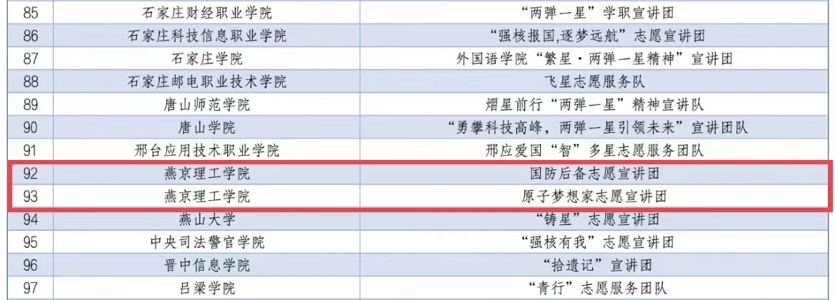 本网讯(艺术学院 姬多嘉)为深入学习宣传贯彻习近平新时代中国特色社会主义思想和党的二十大精神,落实“强国复兴有我”群众性主题宣传教育活动相关要求,引导动员青年学生大力弘扬红色精神,团中央青年志愿者行动指导中心分别联合相关单位,组织开展2024年全国大学生井冈山精神志愿宣讲团、全国大学生“两弹一星”精神志愿宣讲团、全国大学生延安精神志愿宣讲团遴选工作。燕京理工学院共有4支宣讲团成功入选2024年全国大学生志愿宣讲团,其中有艺术学院3支宣讲团成功入选。