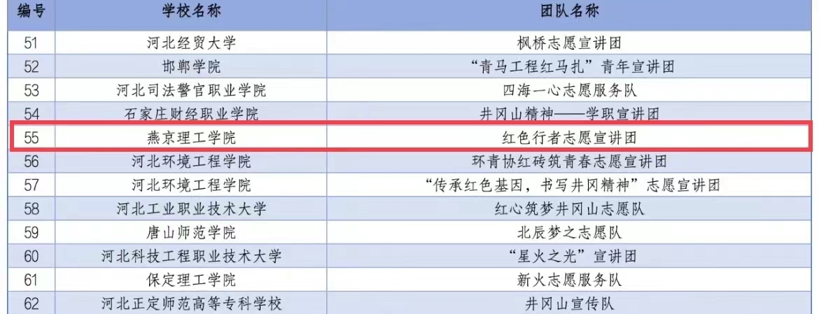 入选团队将在学校团委的指导下,严格按照主办方的相关要求,以“奉献、友爱、互助、进步”的志愿服务精神持续深入开展系列宣讲活动,引导动员青年学生大力弘扬红色精神,展现燕理学子的精神风貌与责任担当,以实际行动让红色基因不断赓续传承。