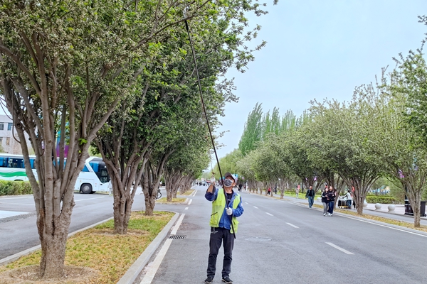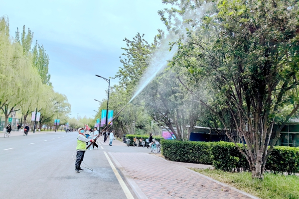春季也是防治病虫害的关键期,后勤物业服务团队坚持“防早防小,全面防治”,重点对各主干道行道树和海棠、碧桃等乔灌木进行喷洒农药防治。严格遵守农药使用安全规范,采用低毒生物制剂高效农药,科学配比药剂。同时,及时清除残留的病枯枝,防止病虫害蔓延,保障植物“肌体健康”。