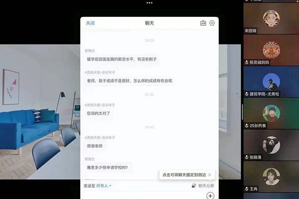 建筑学院执行院长宋丽辉等就家长与学生提出的问题进行了解答。通过本次线上的深入交流,学生和家长进一步了解了专业的情况以及对自身的发展有了更明确的目标与动力,也解开了诸多问题。