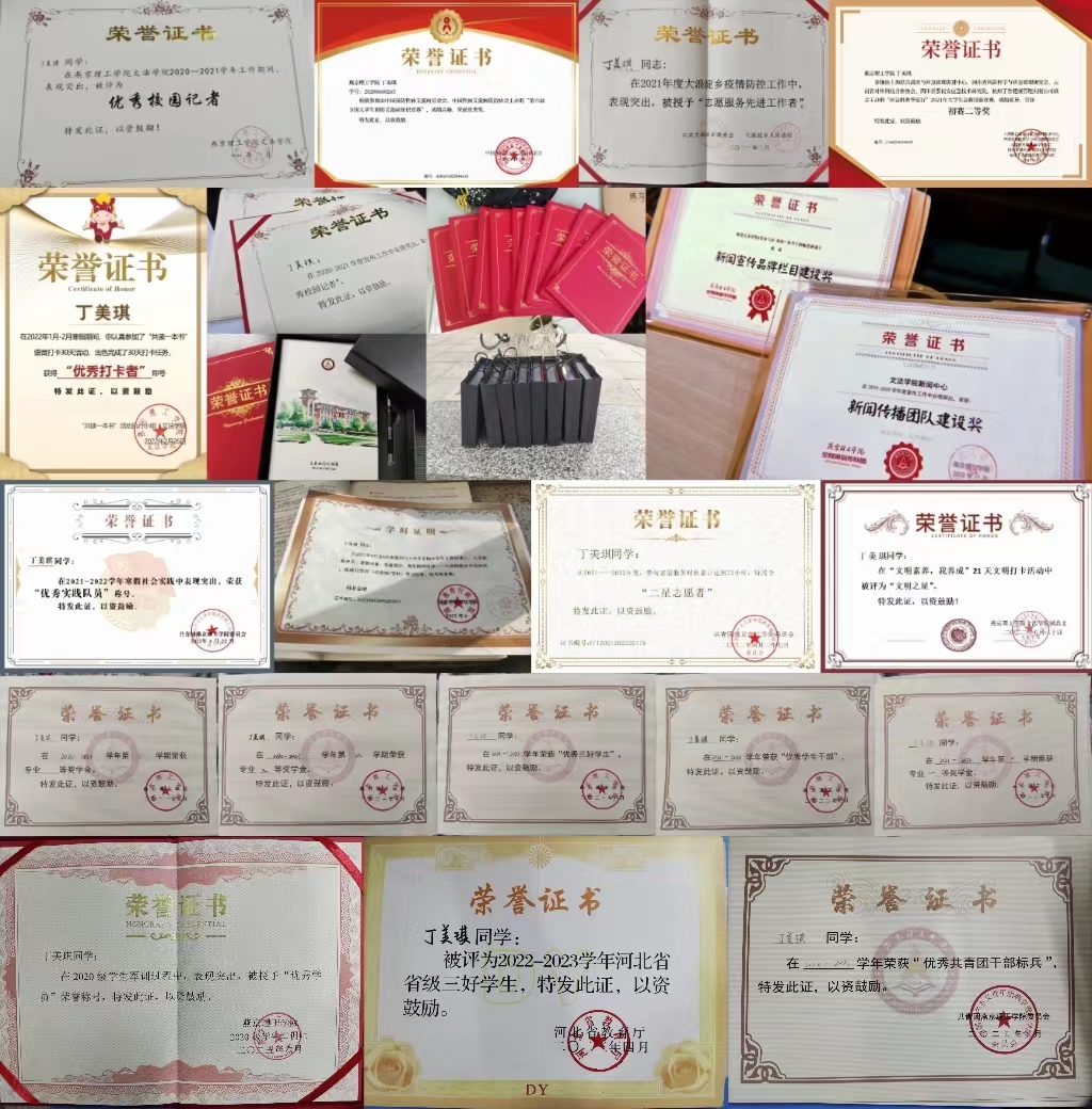 拿到国家奖学金对于丁美琪来说是莫大的鼓励,“因为觉得比自己优秀的人还有很多,看到结果的第一反应确实是十分惊喜的,是终点又是新的起点,荣誉代表过去的努力,过去式不代表将来时,重要的是在从容笃定和盼望中迎接未来”。她表示不会因一时成绩而骄傲,自己会制定长期规划和短期目标,不断奋斗,努力前行。最后,她寄语同学们:永远保持朝气和蓬勃姿态,带着向上的冲劲儿,大胆去做,不念过往,不惧将来,通过自己的努力走出一条属于自己的康庄大道!