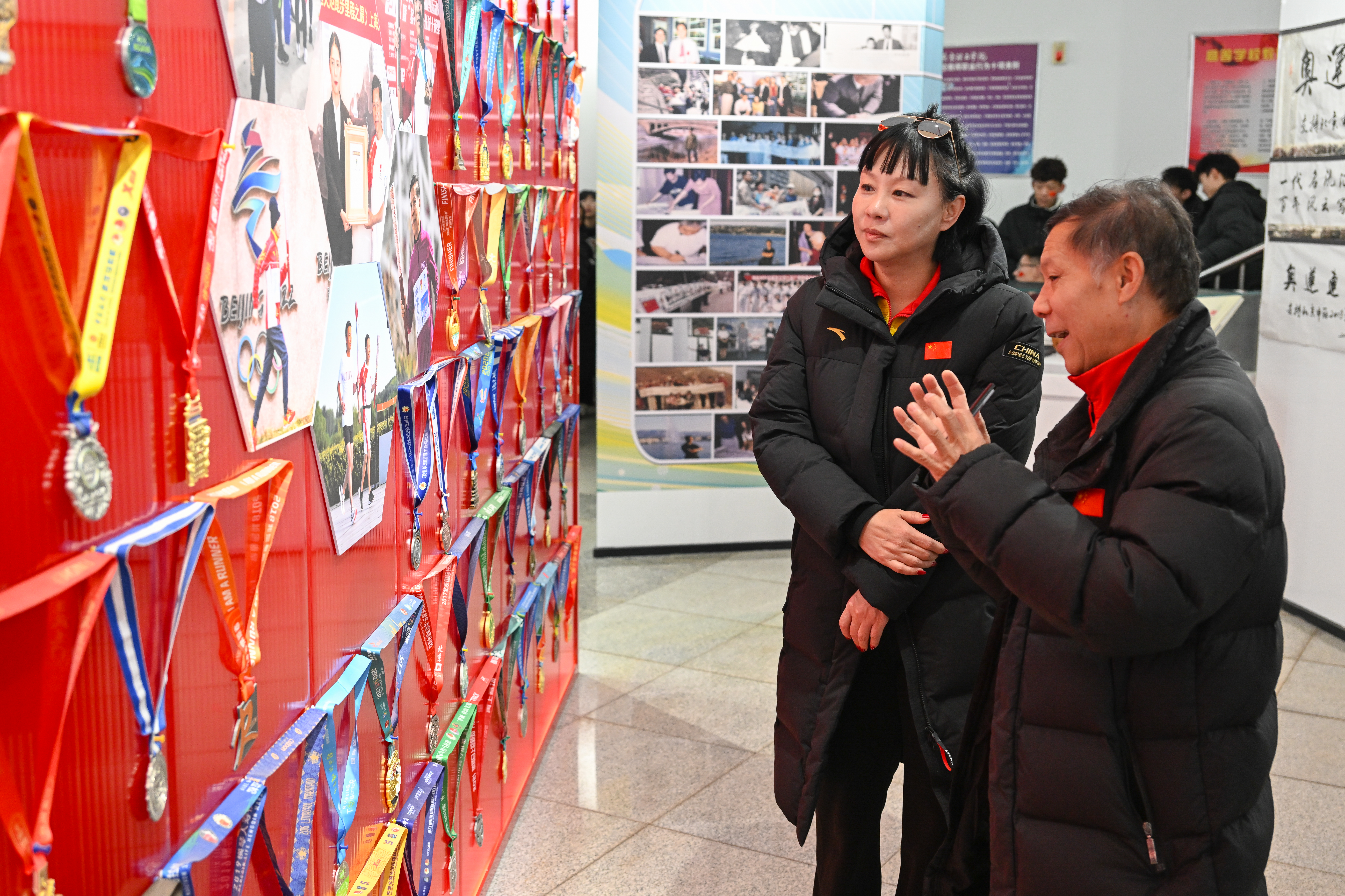体育文化顾问刘超英先生带领钱红女士参观体育典藏馆奥运展品,钱红对我校体育典藏馆的建设给予高度认可,并希望学校再接再厉,积累经验,继续深耕体育文化领域,不断挖掘弘扬体育精神。