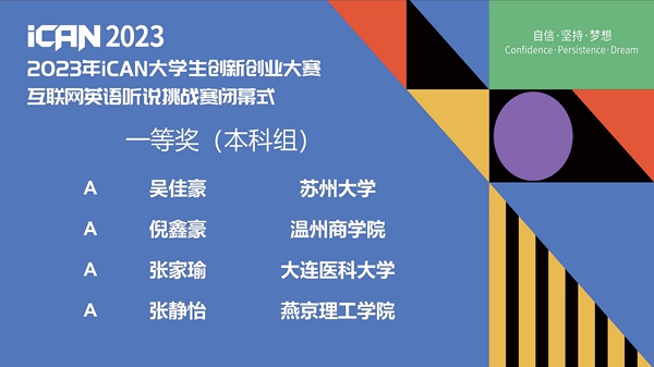 本网讯(人文教育学院 刘娜娜 张静怡)近日,2023年iCAN大学生创新创业大赛互联网英语听说挑战赛闭幕式圆满落下帷幕,人文教育学院学子张静怡荣获全国本科组一等奖。