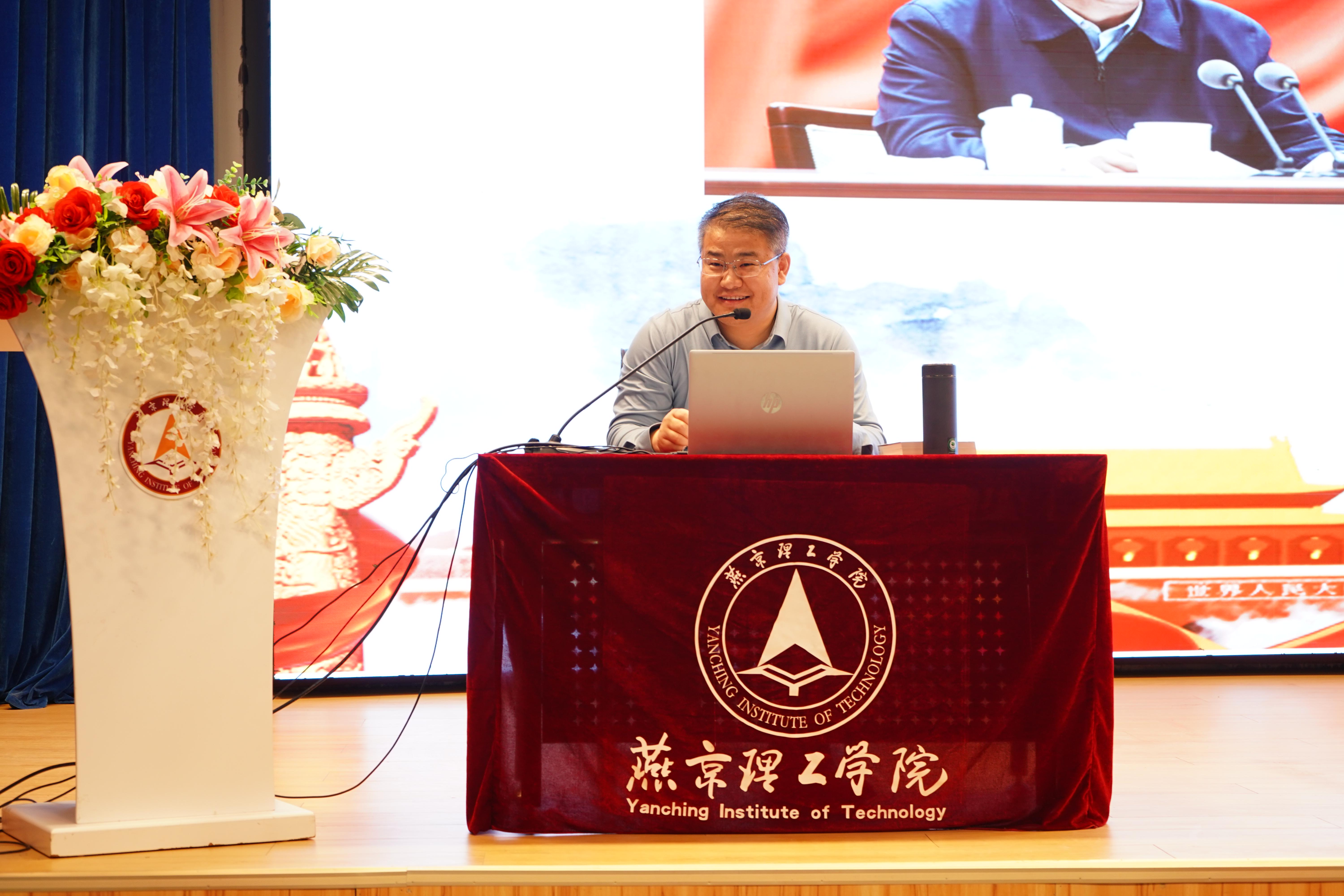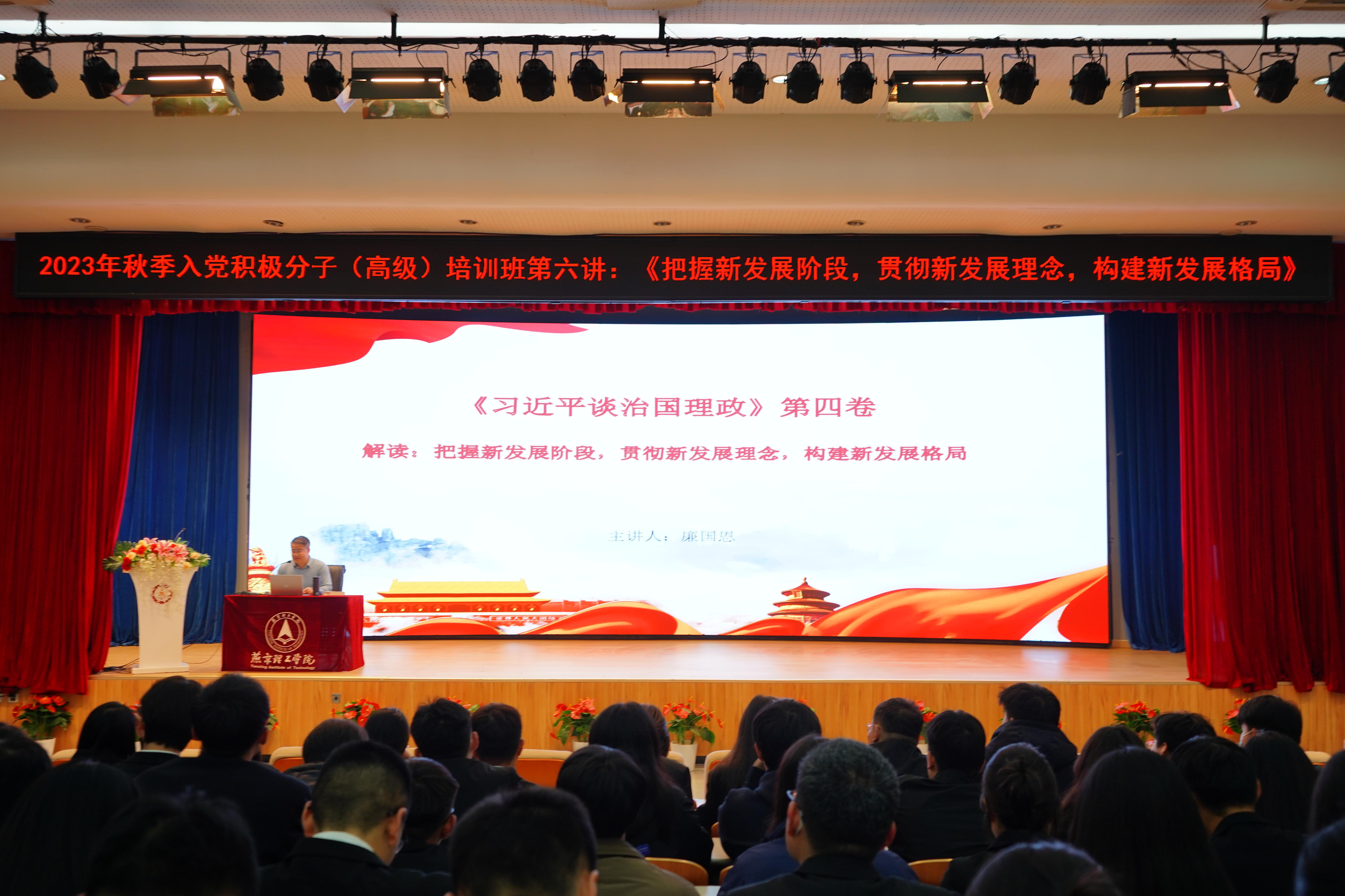 本网讯(党委办公室 张雨 田艺佳 王将旭 黄佳怡)2023年11月20日下午,燕京理工学院2023年秋季入党积极分子(高级)培训班第三讲在报告厅如期举行,此次培训的主题为《把握新发展阶段,贯彻新发展理念,构建新发展格局》,本次培训由学校党委委员、国际商学院院长廉国恩主讲。