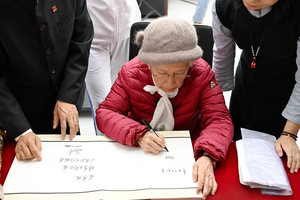 在现场互动环节,面对同学们的提问,张彩珍答疑解惑,鼓励大家面对困难不退却,做最好的自己。最后,张彩珍女士提笔写下寄语并制作冠军手印赠予学校。