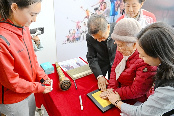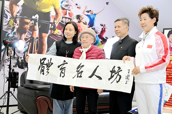 燕京理工学院“体育名人坊”:第一位获得奥林匹克勋章的中国女性张彩珍与学生亲切交流