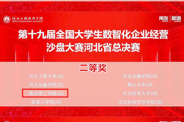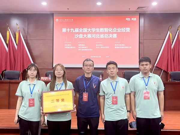 本网讯(会计学院 陈丽洁)9月24日,由中国商业联合会主办,河北省教育厅、河北省高等教育学会指导,河北工程技术学院承办,新道科技股份有限公司提供技术支持的第十九届全国大学生数智化企业经营沙盘大赛河北省总决赛隆重开幕,本次比赛共有河北省24所高校共41支队伍队参加。我校会计学院选拔出会计学专业赵子寒,马俊洋、李炆娜、宫智宇四位同学组队参赛,经过激烈角逐,最终以总成绩第六名获总决赛二等奖。
