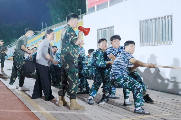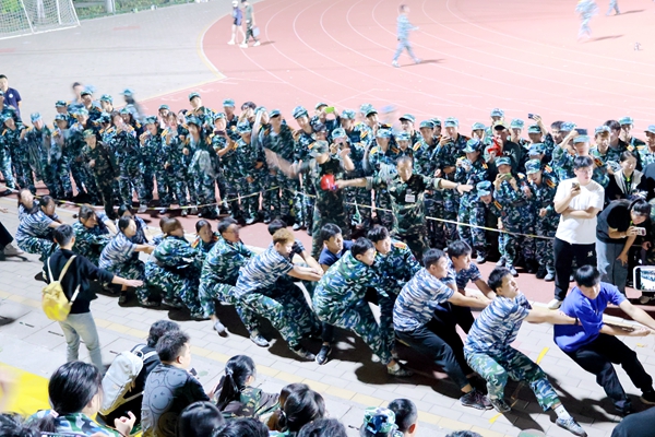 本网讯(体育学院 郭天雄 蒋静文)为深化各连队同学之间的交流,增进同学之间的友谊,丰富同学们的军训生活,同时增强日常体育锻炼的意识,发扬团队协作精神,展现各连队的精神风貌。9月22日,燕京理工学院2023级新生军训拔河比赛在田径场举行。全体军训师学生,各级教官、营副及指导员、驻训参加比赛。
