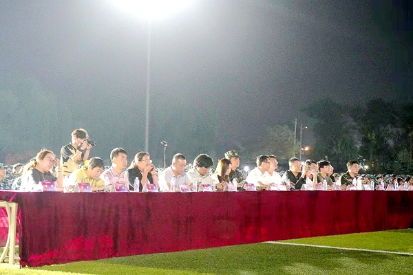 本网讯(智能工程学院 师杏)夜晚的帷幕才刚拉起,嘹亮的军歌响彻云霄,为创造多姿多彩的军训生活,9月18日,燕京理工学院2023级新生军训合唱比赛在体育场举行,畅享红色经典旋律,用歌声来表达对祖国的礼赞,用团结的力量来展现当代青年的精神风貌。2023级学生军训师师长、政委、副师长以及师部成员莅临现场观看比赛并担当此次比赛的评委。