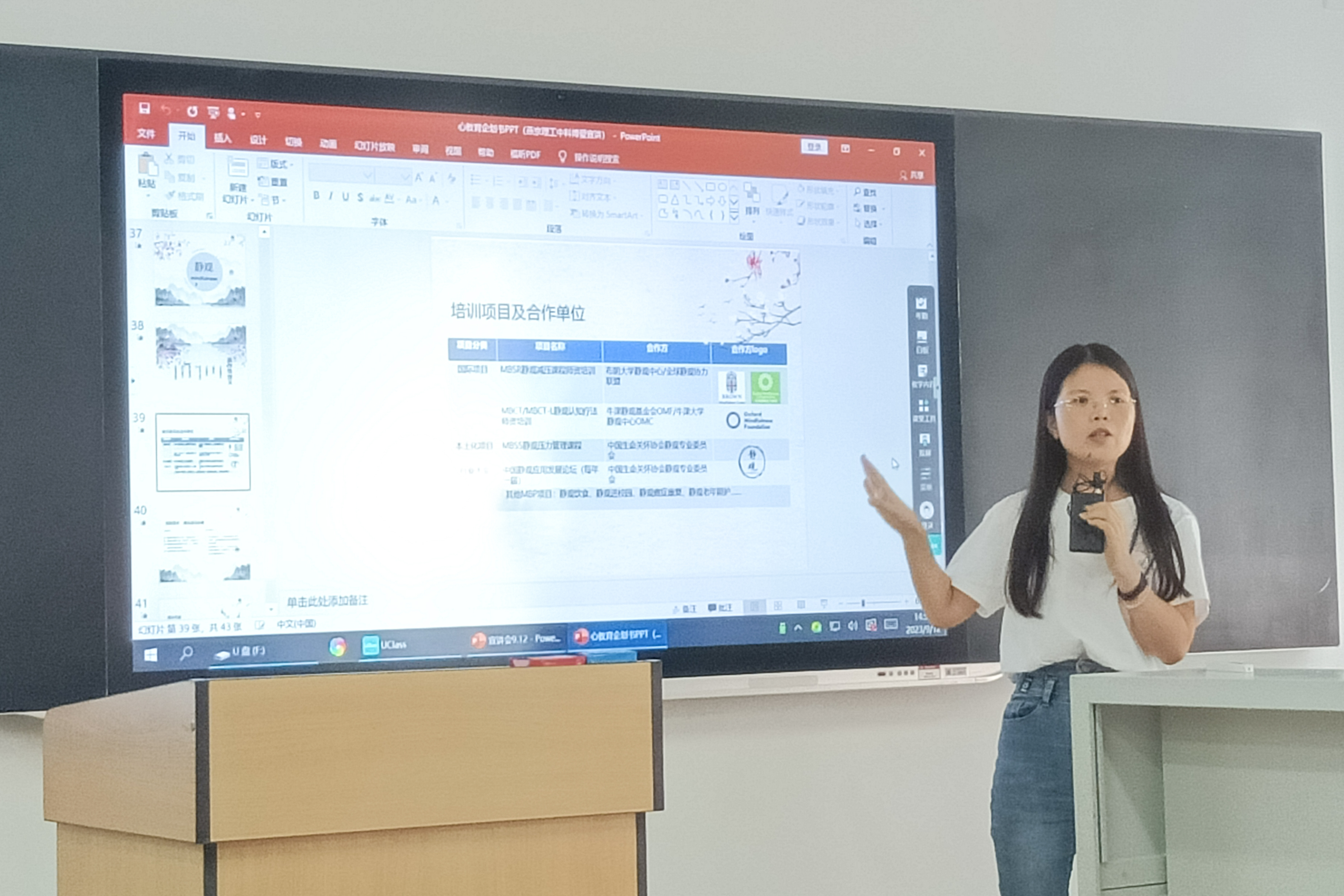 中科博爱内容部主管史敏向同学们介绍了中国第一心理学在线教育平台——心理教育的详细情况和发展历程,展示了心理学的重要性和核心优势,简要介绍了内容部的工作内容。