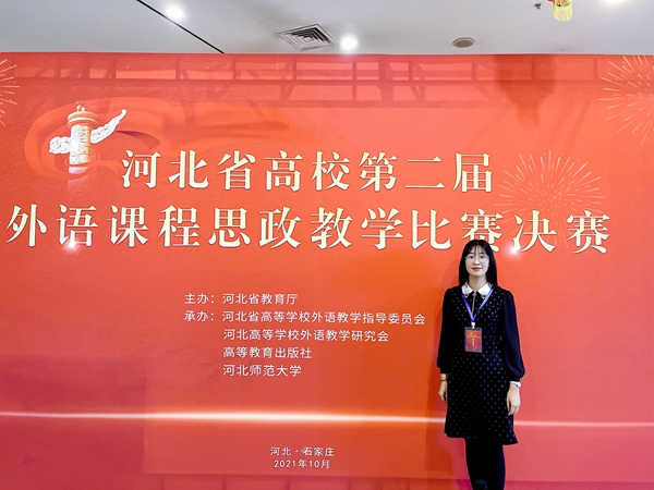 给学生一杯水,教师需有一桶水。教师教学需要不断地提高自己,扩充自己的知识储备,在教学中发现问题、探索方法、解决问题。积极“走出去”,向更多同行前辈学习。曲艺老师一直以来积极参加省校各类教学比赛,不断在教学比赛中积累经验并将先进的教学理念、教学方法和教学案例应用到教学实践当中。曾获得外研社“教学之星”大赛全国复赛一等奖;第三届“外教社杯”全国高校外语教学大赛河北赛区二等奖;河北省外语课程思政教学大赛二等奖;河北省第八届外语微课大赛二等奖等省级校级教学比赛获奖近20项。此外,积极投身教学科研工作,曾主持并完成河北省外语课程思政课题1项,主持在研市级课题2项;参与并完成国家级课题1项;主要参与省市校级课题5项。参编教材4本,其中“十一五”国家规划级教材1本。发表论文十余篇。2019年6月取得了人事部全国翻译CATTI二级笔译证书。