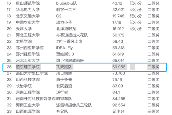 本网讯(信息科学与技术学院 冯菲)2023年第十八届全国大学生智能汽车竞赛华北赛区比赛在太原工业学院落下帷幕,经过三天的激烈角逐,燕京理工学院派出的2支队伍,来自不同组别的两支队伍均获奖,其中信息科学与技术学院、智能工程学院联合参赛队伍队员高熹、赵新颖、安阳瑞三人,在"三轮摄像头组"项目中荣获华北赛区二等奖。