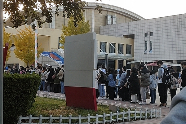 早上6:50排队进入图书馆(郝家悦拍摄)