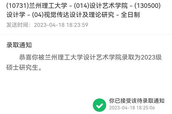 傅嘉俊是艺术学院19级视觉传达设计专业的学生,他成功升硕至兰州理工大学设计学专业。