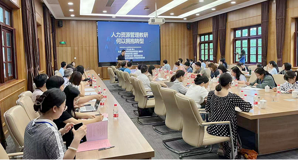 7月16日,《中国人力资源开发》杂志编辑部副主任罗文豪副教授进行《人力资源管理教研何以拥抱转型》的学术研究与人力资源管理专业建设分享,随后举办“人力资源管理专业高质量发展及数智化转型建设圆桌研讨”。