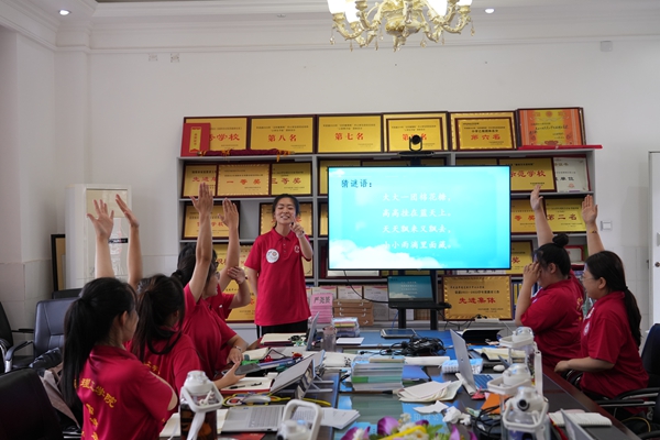 为了上好每一节课,挑灯夜战成了实践队员的“家常便饭”。“哪个小朋友可以回答这道题呢?”“老师,我来回答!”这样的模拟课堂在学校会议室内一次次呈现。制作精美的课件、条理清晰的教学逻辑、明确的教学目标、适合的教学方式、高质量课程的打磨在队员们的交流研讨中越探越明。