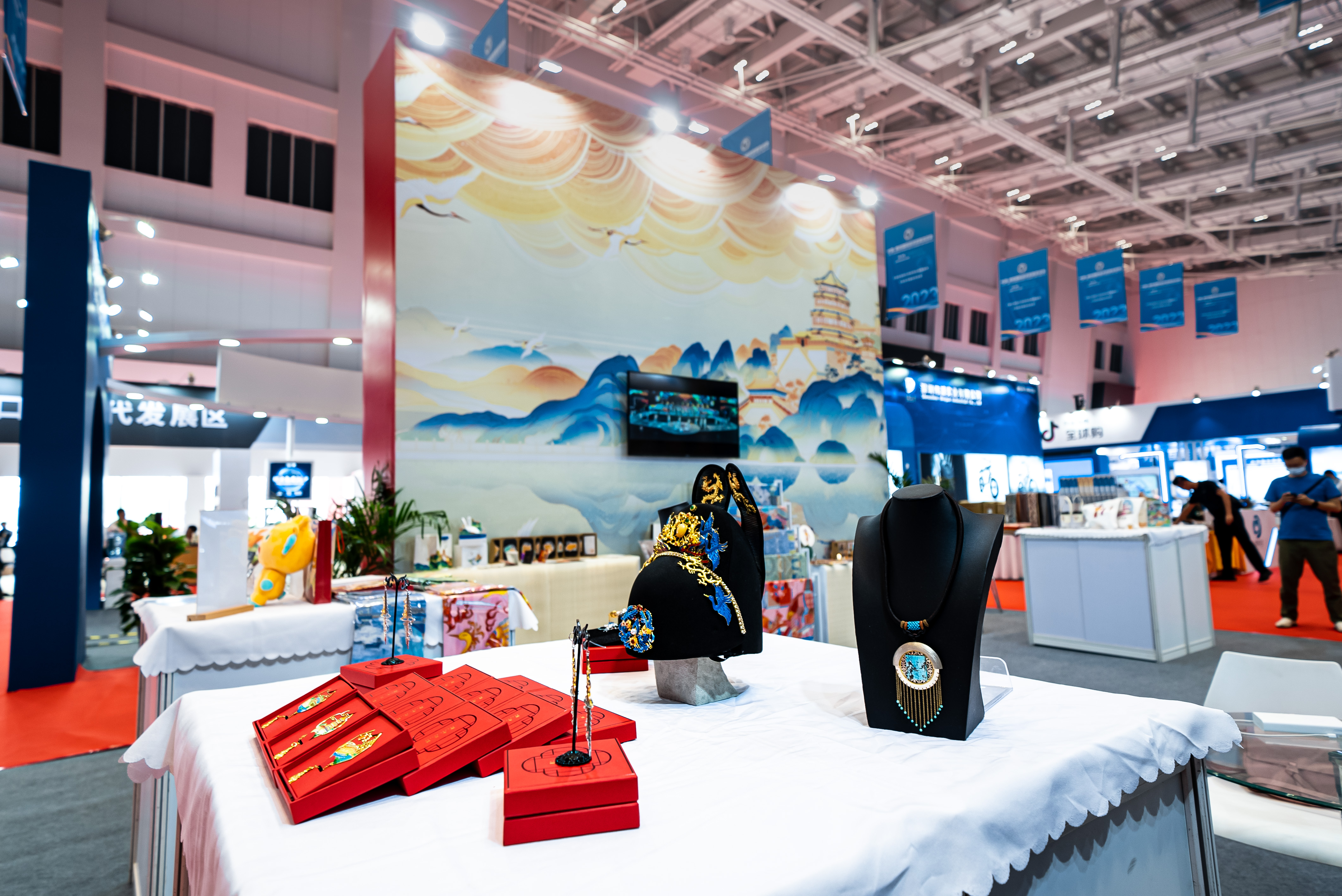 本网讯(艺术学院 王娱)近日,由商务部、海关总署、河北省人民政府共同主办的2023年中国•廊坊国际经济贸易洽谈会在廊坊开幕。国际大学生时尚设计盛典颐和园专项命题赛道部分获奖作品亮相本次洽谈会,呈现以颐和园为创作灵感的二十余种品类、六十余件时尚设计产品,包括丝巾、饰品、书签、摆台、原创IP周边等,帮助设计类学子实现灵感落地、价值转换。