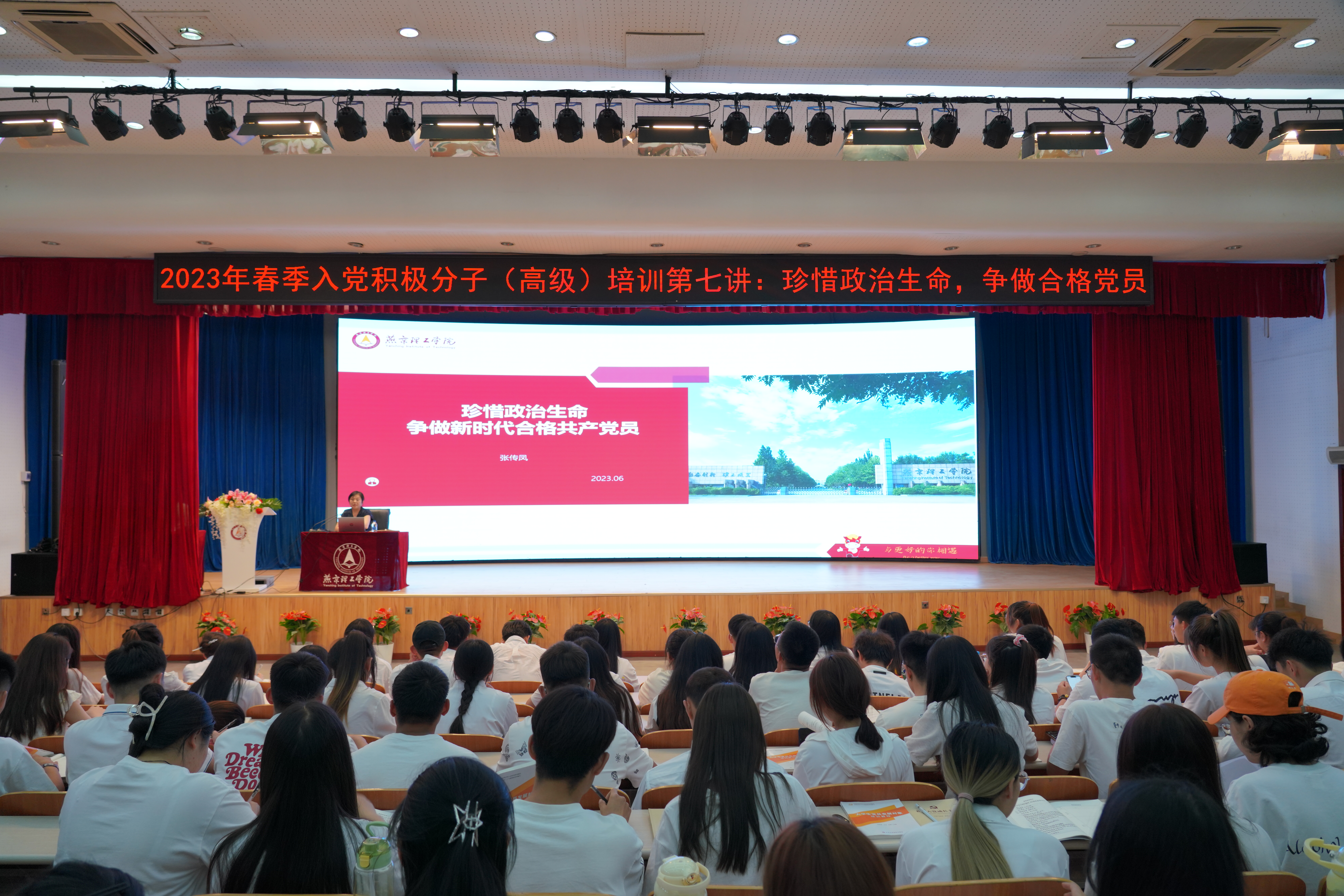 本网讯(党委办公室 张雨 侯芊羽)2023年6月8日,燕京理工学院2023年春季入党积极分子(高级)培训班第七讲在学校报告厅如期举行,此次培训会的主题是:《珍惜政治生命,争做合格党员》。由燕京理工学院党委组织部部长、党委办公室主任张传凤主讲。