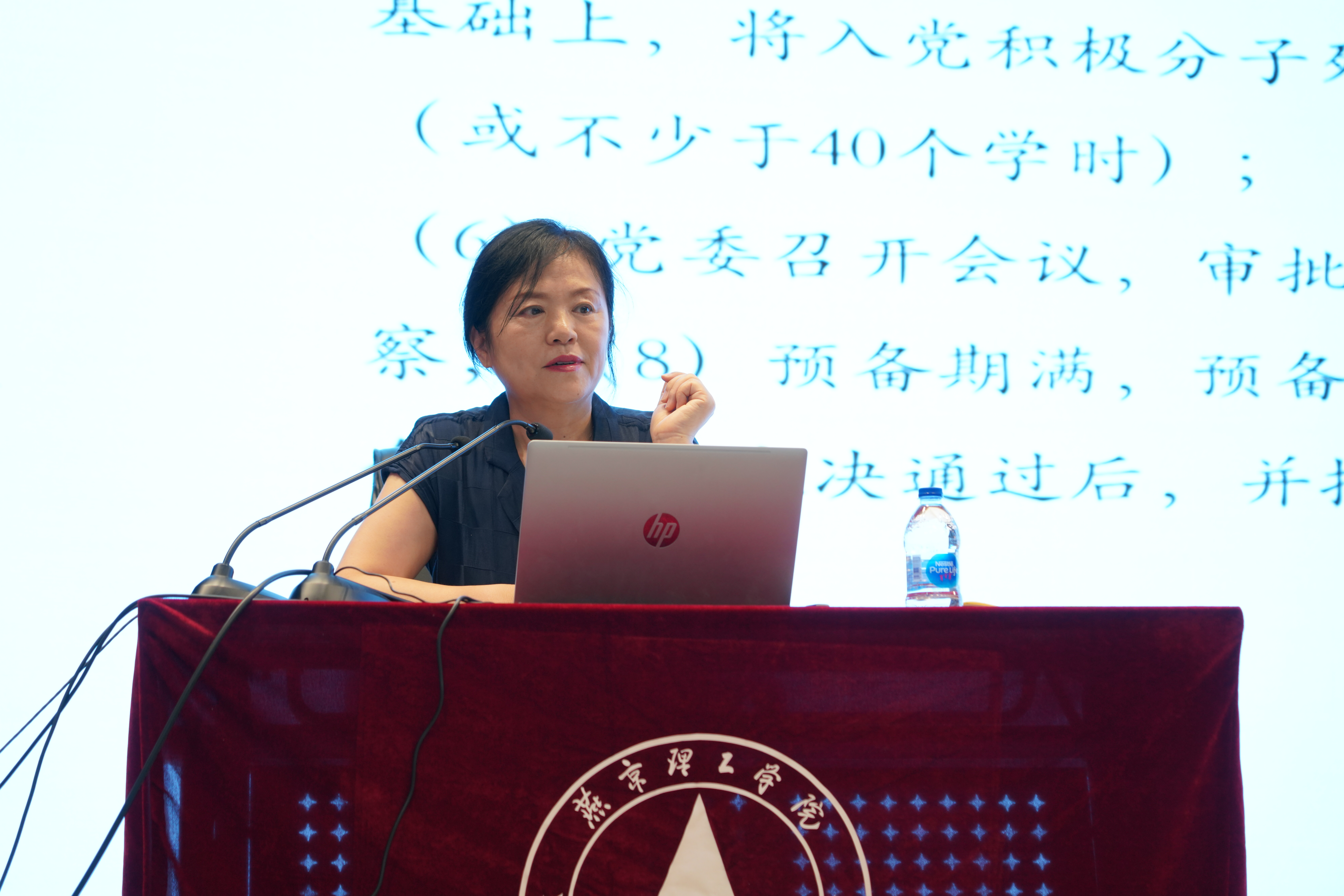 张主任用温柔细腻的语言展开了本次课程的讲解,对何为政治生命、政治权利,为同学们做了解答。通过讲解从普通群众到党员所经历的程序,以及成为党员所需要的各种条件,进一步引出对党员如何珍惜政治生命问题的探索,对学员们提出了珍惜政治生命就要讲政治、有作为、守纪律的具体要求,让同学们秉持“功成不必在我,功成必定有我”的精神,不忘初心,牢记使命,凸显政治生命的意义和价值。