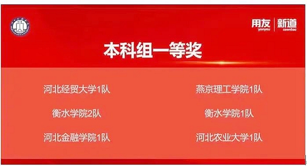 本网讯(会计学院 陈丽洁)6月2日,由河北省教育厅主办,河北金融学院承办,新道科技股份有限公司提供技术支持的2023年第四届河北省高校财务数智化大赛-区块链技术应用创新赛项在云端隆重开幕,本次比赛共吸引河北省42所院校近500名选手参赛。燕京理工学院会计学院经过一个月严格选拔,由会计学专业学生张圣瑶、刘旭东、郭晨雪、谢雅雯四位同学参赛,最终获得本科组一等奖好成绩。