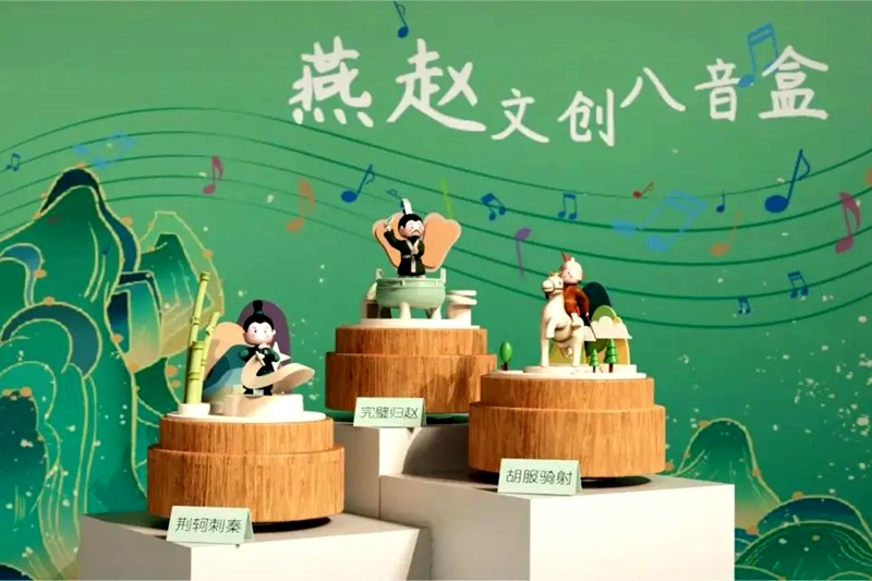 刘沿东作品《“成语盒子”八音盒》选取“燕赵文化”的三个成语故事——胡服骑射、荆轲刺秦和完璧归赵,意在赋予产品文化价值,推广燕赵文化。通过对故事主要人物的形象设计和八音盒形式完成此次的文创产品设计,也增添了趣味性。