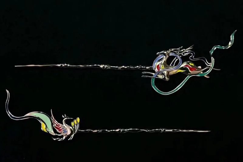 陈皓龙作品《九色鹿》以敦煌莫高窟中的壁画作为创作元素,设计一款蕴含中华传统文化的首饰,使首饰与中国传统文化相结合,促使人们去了解敦煌壁画中的每一个故事,让大众感受到敦煌壁画艺术中的意境与情趣。