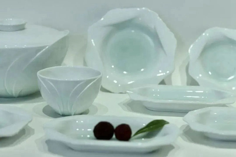 黄敬丹作品《影青·蝶》设计将蝴蝶与陶瓷餐具相结合,餐具釉色选用影青。设计元素为蝴蝶本身,选用其本身结构、形态、纹理以及它的动态等元素完成一组蝴蝶陶瓷餐具。影青釉色温润细腻,质感如玉,清晰养眼的表现了蝴蝶餐具的特征和它的美。