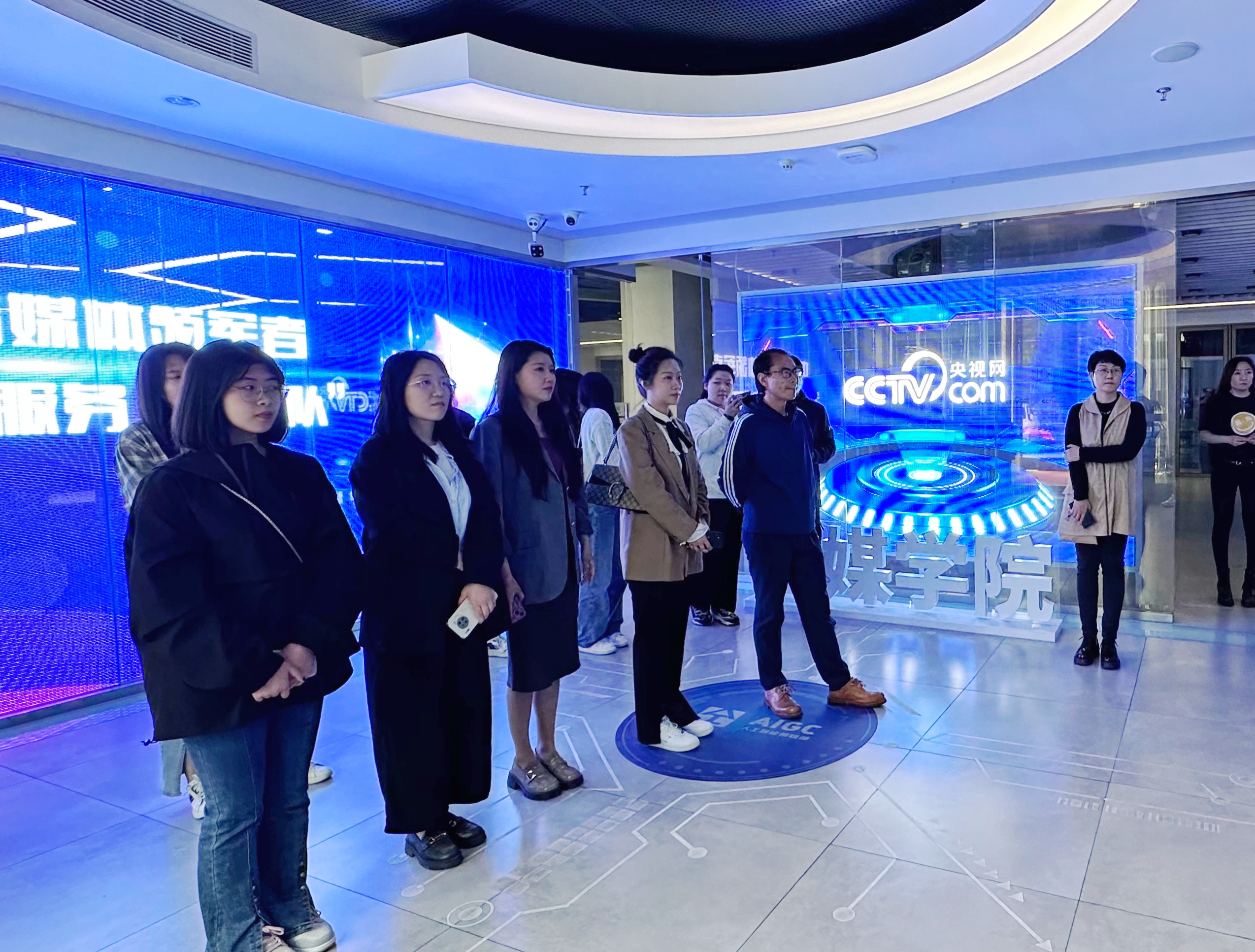 央视网智慧媒体学院副院长刘瑶、商务总监左莹带领同学们参观央视网人工智能编辑部,体验融媒体产业技术。同学们详细了解了智能采集、智能制作、智能审核、舆情监测等智能技术,与央视网虚拟数字人“小C”进行互动。通过参观,同学们清晰了解了当下媒体融合生产能力和表现形式,并进一步激发同学们对于融媒产业的求知欲和浓厚兴趣。