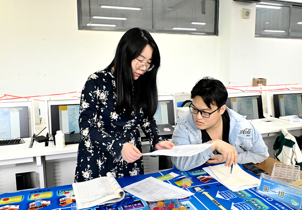 4月27日,第一天的项目管理沙盘模拟培训拉开了序幕,同学们很早就来到了教室进行各项培训前的准备工作,测试安装软件、熟悉培训项目的策划与执行规则、检查有关教具是否完整。广联达邹老师系统耐心讲解了“凯旋门工程项目案例”,由于不同管理人员的职责要求和工作任务有所不同,同学们在培训过程中进行了合理分工和角色扮演,通过直观的演练与操作、BIM教室先进的教学设备、多屏幕同步演示和指导,学生很快就进入了培训状态。根据项目的发展进程进行各类单据的填写,查找不同颜色的原材料和资金的代用币,放到沙盘的相应位置,这种演练模式完全将施工现场各项管理工作,搬进了课堂。