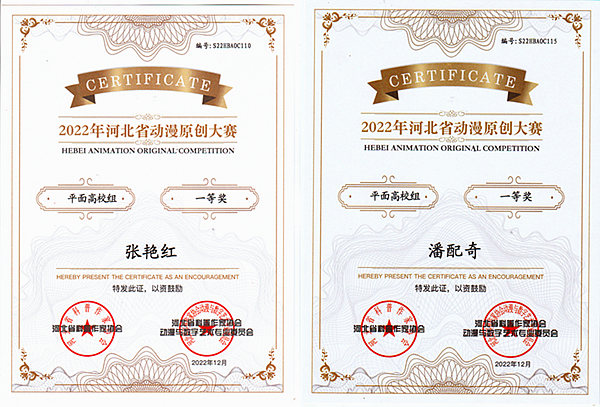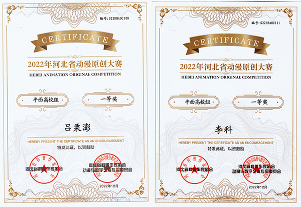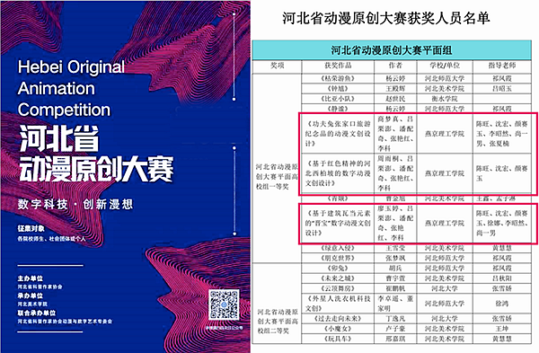 未来设计师·全国艺术设计教师教学创新大赛由工业和信息化部人才交流中心主办,入选中国高等教育学会发布的《全国普通高校教师教学竞赛项目》,共有来自365所高校1727名教师的740门课程参赛,是国家教育部认可的56项全国高校顶级国赛教学类赛事项目之一,具有广泛影响力。河北省首届动漫原创大赛以“数字科技·创新漫想”为主题思想,鼓励原创,激发创新思维,展示全省数字艺术与科技创新成果,传播科技创新和产学研融合的育人理念。燕理艺术与科技专业师生揽获3项大赛"一等奖",充分证明了学校艺术类人才培养水平,学校育人成果丰硕。
