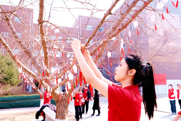 海棠寄语,开启新的希望。在党建广场两侧的海棠树上,雷锋连成员纷纷拿起卡片、结绳挂树,写满对雷锋同志无限怀念以及对雷锋月系列活动美好祝愿的祝福卡片随风飘扬,一句句寄语让我们看到了燕理学子加入到校园建设与志愿服务中的信心与决心。以雷锋同志为榜样,争做一颗永不生锈的螺丝钉。志愿者们在海棠树下呼吁大家,加入到志愿者行列中去,用青春与赤诚,为志愿服务开启新的希望。