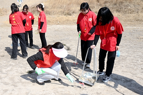 绘春之清嘉,护河之洁净。初春时节,在潮白河流域燕郊段的河岸上总能看到志愿者的身影,燕理师生身穿红马甲、手持垃圾袋、垃圾钳等工具对河道沿线的“白色垃圾”进行清理。他们也向过往群众宣传讲解垃圾分类、水源保护知识等,号召更多的志愿者参与到爱河护河行动中来。