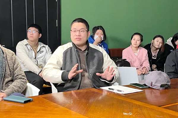 黄鹏老师向同学们分享了剧本的大致内容,他邀请三位同学谈谈他们对剧本的看法及向剧本提出修改意见,给同学们提供锻炼实践的机会。三位同学分别从具体台词、分析人物性格及影视可观性等方面进行探讨。