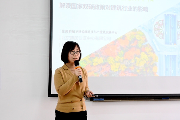 马博士本次讲座的主题为:从超低能耗建筑走向碳中和——解读国家双碳政策对建筑行业的影响。首先,她通过各项数据让我们了解到国家碳排放的现状,充分解释了我国为什么要大力发展节能建筑,以及国家双碳政策对建筑行业的影响,说明了建筑领域是实现碳达峰碳中和战略的重要内容。