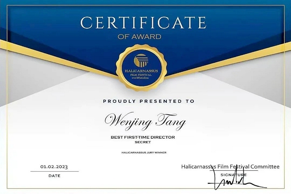 本网讯(传媒学院 周秉虹)近日,哈利卡纳苏斯国际电影节获奖名单公布,我校传媒戏剧影视导演专业2001班唐雯静同学凭借作品《秘密》荣获土耳其哈利卡纳苏斯国际电影节最佳新人导演奖。