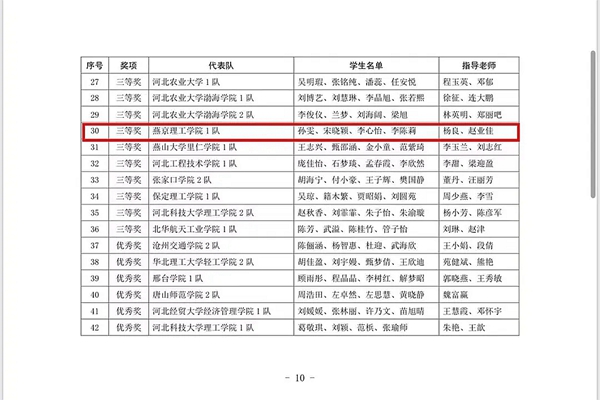 会计学院组建2支队伍参赛,经过激烈的角逐,在各位指导老师与同学们通力合作之下,由杨良院长、杨慧慧老师带领的燕京理工学院1队和吴俊岭老师、苏洪琳老师带领的燕京理工学院2队同获优秀奖。