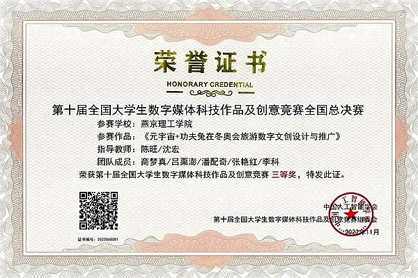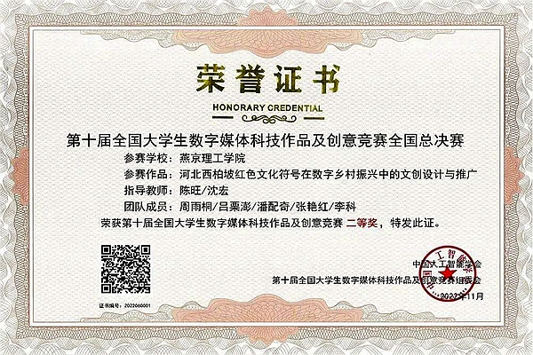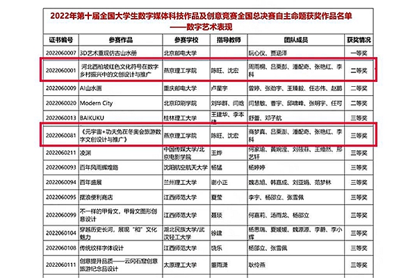 砥志研思,突出重围。我校师生在来自458所高校3219个参赛团队中喜创佳绩,周雨桐、吕栗澎、潘配奇、张艳红、李科五位同学的《河北西柏坡红色文化符号在数字乡村振兴中的文创设计与推广》项目荣获国赛本科组数字艺术表现二等奖;商梦真、吕栗澎、潘配奇、张艳红、李科五位同学的《元宇宙+功夫兔在冬奥会旅游数字文创设计与推广》项目荣获国赛本科组数字艺术表现三等奖。