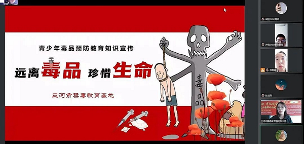 本网讯(环境与健康学院 陶薪羽)环境与健康学院开展“健康中国,你我同行”线上禁毒讲座,讲座由三河市禁毒教育基地张天杨讲师主讲。各班学生代表参加了本次讲座,加强大学生对毒品危害的认识,增强自我保护意识,提升大学生抵御毒品的能力。