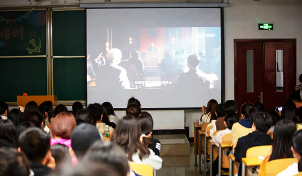 王冬月老师从如何端正入党动机、入党的手续和流程三个方面为新生进行授课。同时,观看了向新中国共产党建党90周年献礼的重要影片《建党伟业》。展影完毕,同学们学到了党史、了解了党情,对中国共产党有了更加充分认识,端正了入党态度,进一步坚定了跟党走中国特色社会主义道路的理想信念。党员标准为大学生成长进步提供了努力坐标和参照。