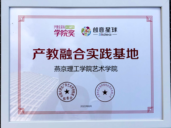 现场,组委会发起成立“中国创意教育产教融合联合基地示范工程”发布仪式,我校与学院奖组委会建立合作,被授予“产教融合实践基地”,并在盛典现场进行了授牌。
